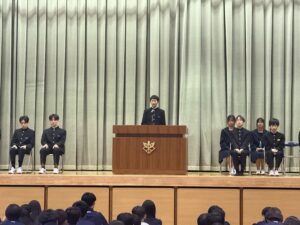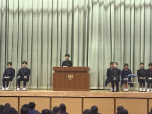 10月29日,生徒会立会演説会がありました。たくさんの立候補がありました。立候補者はそれぞれの田原本中学校を良くしたい思いを語っていました。